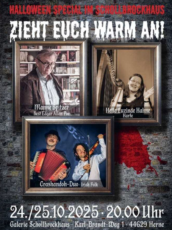 Am 24. und 25. Oktober 2025 durfte ich mein neuestes Werk im Schollbrockhaus in Herne präsentieren. Das Haus ist ein besonderer Ort für Ausstellungen und Malkurse und bietet mit dem Kunstverein „Schollbrockhaus e. V.“ eine lebendige Plattform, auf der unterschiedliche künstlerische Positionen für alle zugänglich werden.